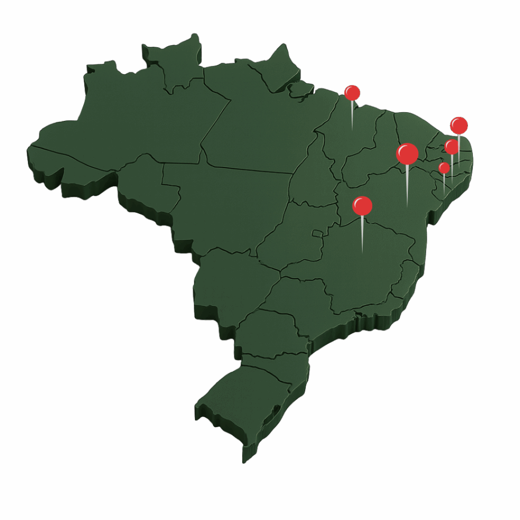 Atendemos com frequência os estados de Alagoas, Bahia, Pernambuco e Sergipe, e também realizamos projetos no Maranhão e Minas Gerais.